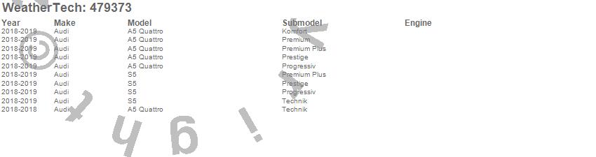 Below is an abbreviated list of applications for the FloorLiner DigitalFit.A5 Quattro, S5, Audi, 2019, 2018