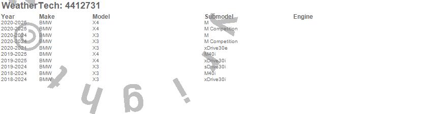Below is an abbreviated list of applications for the FloorLiner DigitalFit.X3, X4, BMW, 2025, 2024, 2023, 2022, 2021, 2020, 2019, 2018