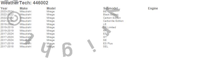 Below is an abbreviated list of applications for the FloorLiner DigitalFit.Mirage, Mitsubishi, 2024, 2023, 2022, 2021, 2020, 2019, 2018, 2017