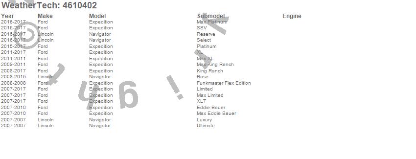 Below is an abbreviated list of applications for the FloorLiner DigitalFit.Expedition, Navigator, Ford, Lincoln, 2017, 2016, 2015, 2014, 2013, 2012, 2011, 2010, 2009, 2008, 2007