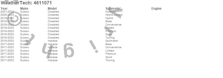 Below is an abbreviated list of applications for the FloorLiner DigitalFit.Crosstrek, Impreza, Subaru, 2023, 2022, 2021, 2020, 2019, 2018, 2017