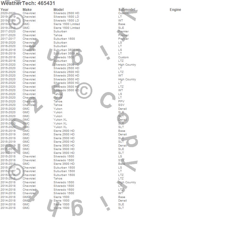 Below is an abbreviated list of applications for the FloorLiner DigitalFit.Sierra 1500, Sierra 1500 Limited, Sierra 2500 HD, Sierra 3500 HD, Silverado 1500, Silverado 1500 LD, Silverado 2500 HD, Silverado 3500 HD, Suburban, Suburban 1500, Suburban 3500 HD, Tahoe, Yukon, Yukon XL, Chevrolet, GMC, 2020, 2019, 2018, 2017