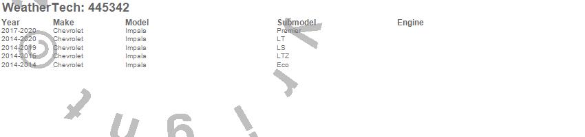 Below is an abbreviated list of applications for the FloorLiner DigitalFit.Impala, Chevrolet, 2020, 2019, 2018, 2017, 2016, 2015, 2014