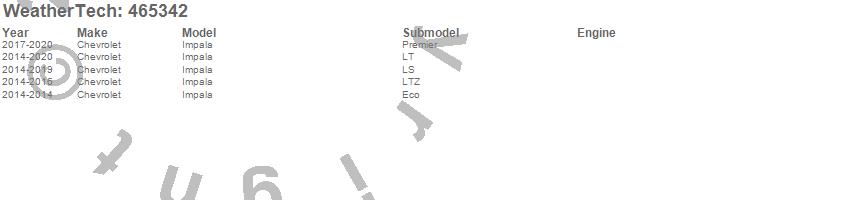 Below is an abbreviated list of applications for the FloorLiner DigitalFit.Impala, Chevrolet, 2020, 2019, 2018, 2017, 2016, 2015, 2014