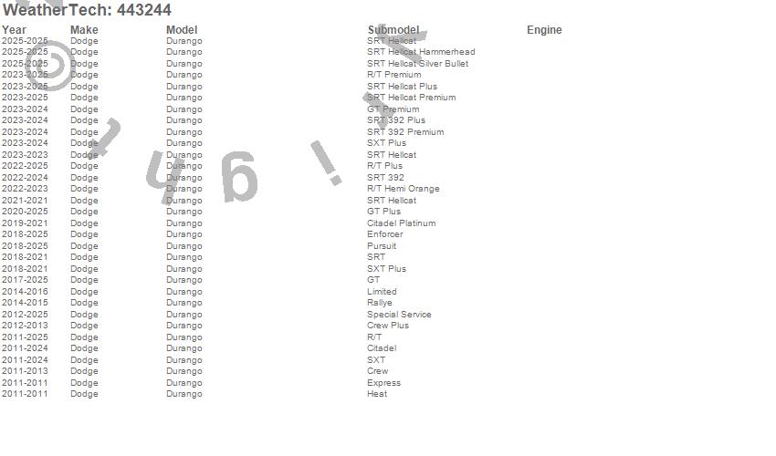 Below is an abbreviated list of applications for the FloorLiner DigitalFit.Durango, Dodge, 2026, 2025, 2024, 2023, 2022, 2021, 2020, 2019, 2018, 2017, 2016, 2015, 2014, 2013, 2012, 2011