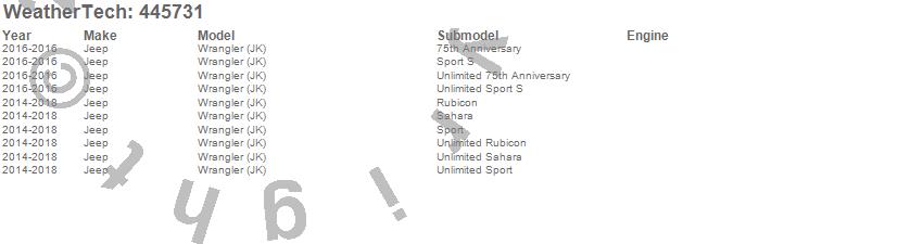 Below is an abbreviated list of applications for the FloorLiner DigitalFit.Wrangler (JK), Jeep, 2018, 2017, 2016, 2015, 2014
