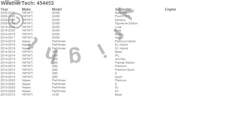 Below is an abbreviated list of applications for the FloorLiner DigitalFit.JX35, Pathfinder, Q60, QX60, INFINITI, Nissan, 2020, 2019, 2018, 2017, 2016, 2015, 2014, 2013