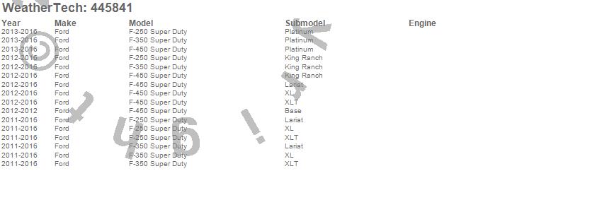 Below is an abbreviated list of applications for the FloorLiner DigitalFit.F-250 Super Duty, F-350 Super Duty, F-450 Super Duty, Ford, 2016, 2015, 2014, 2013, 2012, 2011