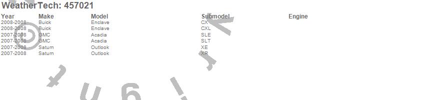 Below is an abbreviated list of applications for the FloorLiner DigitalFit.Acadia, Enclave, Outlook, Buick, GMC, Saturn, 2008, 2007