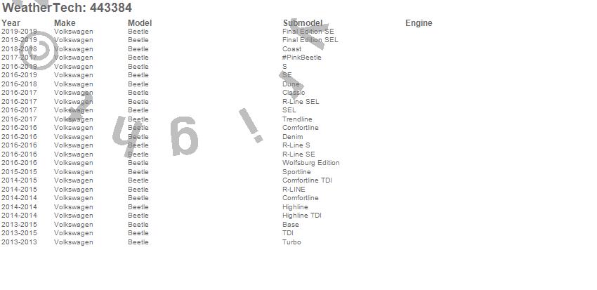 Below is an abbreviated list of applications for the FloorLiner DigitalFit.Beetle, Volkswagen, 2019, 2018, 2017, 2016, 2015, 2014, 2013