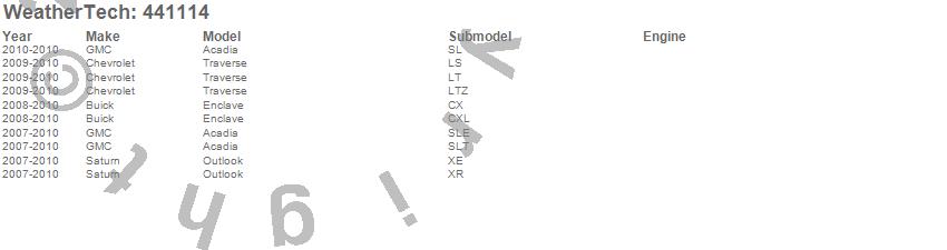 Below is an abbreviated list of applications for the FloorLiner DigitalFit.Acadia, Enclave, Outlook, Traverse, Buick, Chevrolet, GMC, Saturn, 2010, 2009, 2008, 2007