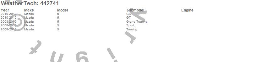 Below is an abbreviated list of applications for the FloorLiner DigitalFit.5, Mazda, 2010, 2009, 2008