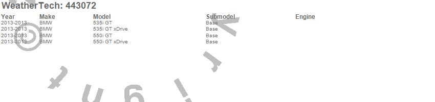 Below is an abbreviated list of applications for the FloorLiner DigitalFit.535i GT, 535i GT xDrive, 550i GT, 550i GT xDrive, BMW, 2013, 2012, 2011, 2010
