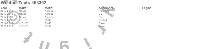 Below is an abbreviated list of applications for the FloorLiner DigitalFit.Armada, QX56, QX80, INFINITI, Nissan, 2018, 2017, 2016, 2015, 2014, 2013, 2012, 2011