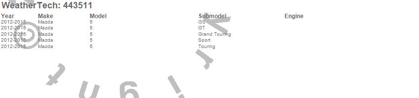 Below is an abbreviated list of applications for the FloorLiner DigitalFit.5, Mazda, 2015, 2014, 2013, 2012