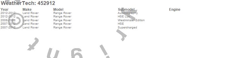 Below is an abbreviated list of applications for the FloorLiner DigitalFit.Range Rover, Land Rover, 2012, 2011, 2010, 2009, 2008, 2007