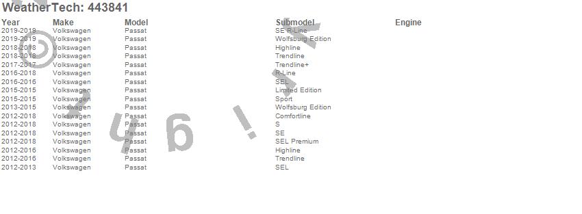 Below is an abbreviated list of applications for the FloorLiner DigitalFit.Passat, Volkswagen, 2019, 2018, 2017, 2016, 2015, 2014, 2013, 2012
