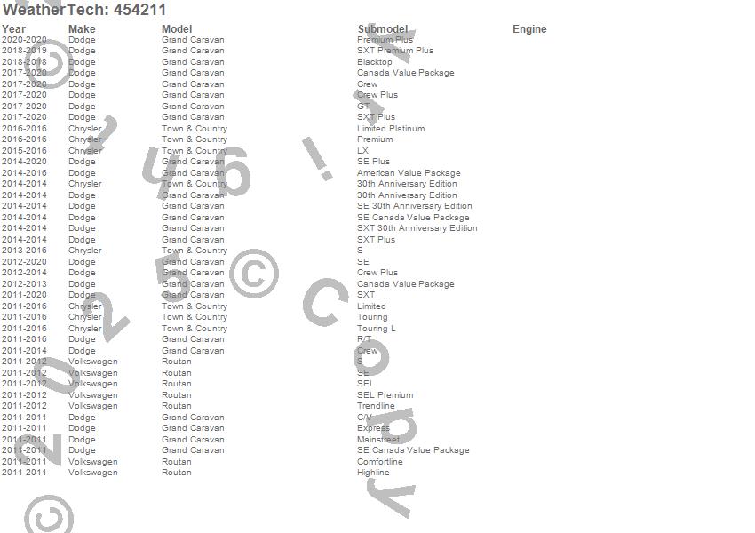 Below is an abbreviated list of applications for the FloorLiner DigitalFit.Grand Caravan, Routan, Town & Country, Chrysler, Dodge, Volkswagen, 2020, 2019, 2018, 2017, 2016, 2015, 2014, 2013, 2012, 2011