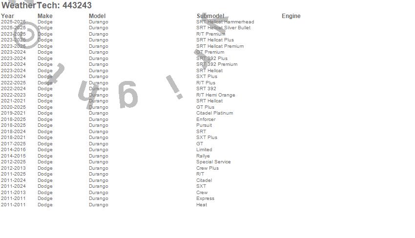 Below is an abbreviated list of applications for the FloorLiner DigitalFit.Durango, Dodge, 2026, 2025, 2024, 2023, 2022, 2021, 2020, 2019, 2018, 2017, 2016, 2015, 2014, 2013, 2012, 2011