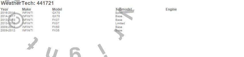 Below is an abbreviated list of applications for the FloorLiner DigitalFit.FX35, FX37, FX50, QX70, INFINITI, 2017, 2016, 2015, 2014, 2013, 2012, 2011, 2010, 2009