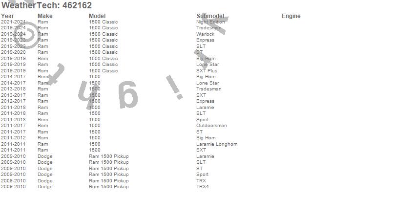 Below is an abbreviated list of applications for the FloorLiner DigitalFit.1500, 1500 Classic, Ram 1500, Dodge, Ram, 2024, 2023, 2022, 2021, 2020, 2019, 2018, 2017, 2016, 2015, 2014, 2013, 2012, 2011, 2010