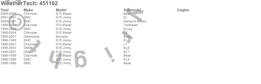 Below is an abbreviated list of applications for the FloorLiner DigitalFit.Bravada, S10 Blazer, S15 Jimmy, Chevrolet, GMC, Oldsmobile, 2005, 2004, 2003, 2002, 2001, 2000, 1999, 1998, 1997, 1996, 1995