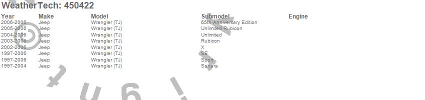 Below is an abbreviated list of applications for the FloorLiner DigitalFit.Wrangler (TJ), Jeep, 2006, 2005, 2004, 2003, 2002, 2001, 2000, 1999, 1998, 1997