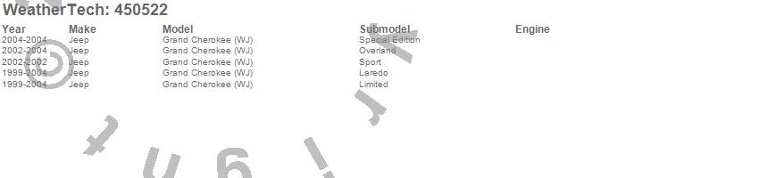 Below is an abbreviated list of applications for the FloorLiner DigitalFit.Grand Cherokee (WJ), Jeep, 2004, 2003, 2002, 2001, 2000, 1999