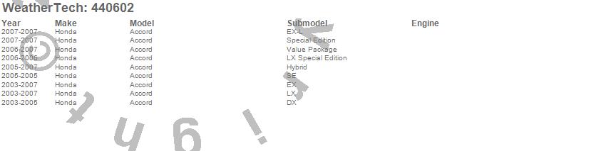 Below is an abbreviated list of applications for the FloorLiner DigitalFit.Accord, Honda, 2007, 2006, 2005, 2004, 2003