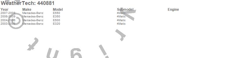Below is an abbreviated list of applications for the FloorLiner DigitalFit.E320, E350, E500, E550, Mercedes-Benz, 2009, 2008, 2007, 2006, 2005, 2004, 2003