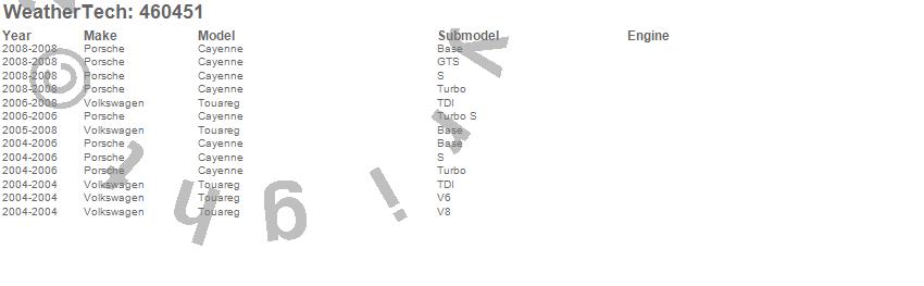 Below is an abbreviated list of applications for the FloorLiner DigitalFit.Cayenne, Touareg, Porsche, Volkswagen, 2008, 2007, 2006, 2005, 2004