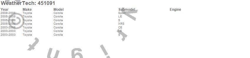 Below is an abbreviated list of applications for the FloorLiner DigitalFit.Corolla, Toyota, 2008, 2007, 2006, 2005, 2004, 2003