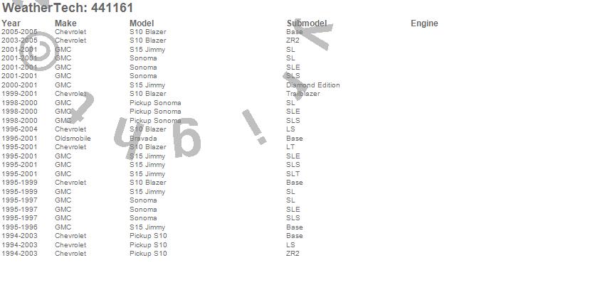 Below is an abbreviated list of applications for the FloorLiner DigitalFit.Bravada, S10 Blazer, S10 Pickup, S15 Jimmy, Sonoma, Chevrolet, GMC, Oldsmobile, 2005, 2004, 2003, 2002, 2001, 2000, 1999, 1998, 1997, 1996, 1995, 1994