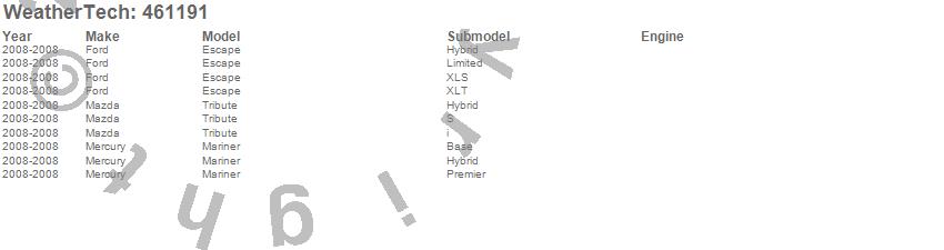 Below is an abbreviated list of applications for the FloorLiner DigitalFit.Escape, Mariner, Tribute, Ford, Mazda, Mercury, 2008