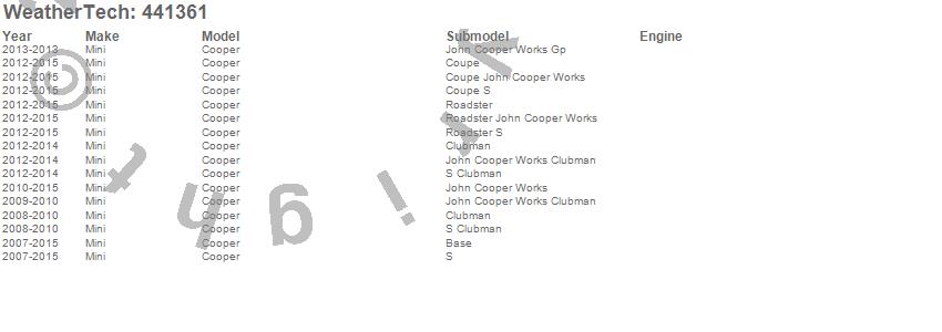 Below is an abbreviated list of applications for the FloorLiner DigitalFit.Cooper, Mini, 2015, 2014, 2013, 2012, 2011, 2010, 2009, 2008, 2007