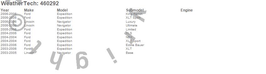 Below is an abbreviated list of applications for the FloorLiner DigitalFit.Expedition, Navigator, Ford, Lincoln, 2006, 2005, 2004, 2003