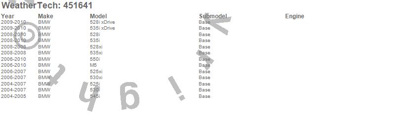 Below is an abbreviated list of applications for the FloorLiner DigitalFit.525i, 525xi, 528i, 528i xDrive, 528xi, 530i, 530xi, 535i, 535i xDrive, 535xi, 545i, 550i, M5, BMW, 2010, 2009, 2008, 2007, 2006, 2005
