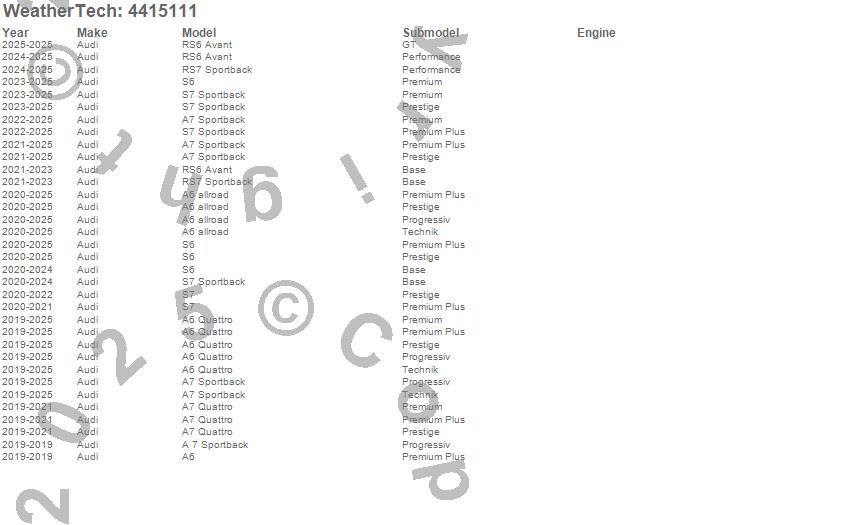Below is an abbreviated list of applications for the FloorLiner DigitalFit.A 7 Sportback, A6, A6 allroad, A6 Quattro, A7 Quattro, A7 Sportback, RS6 Avant, RS7 Sportback, S6, S7, S7 Sportback, Audi, 2026, 2025, 2024, 2023, 2022, 2021, 2020, 2019