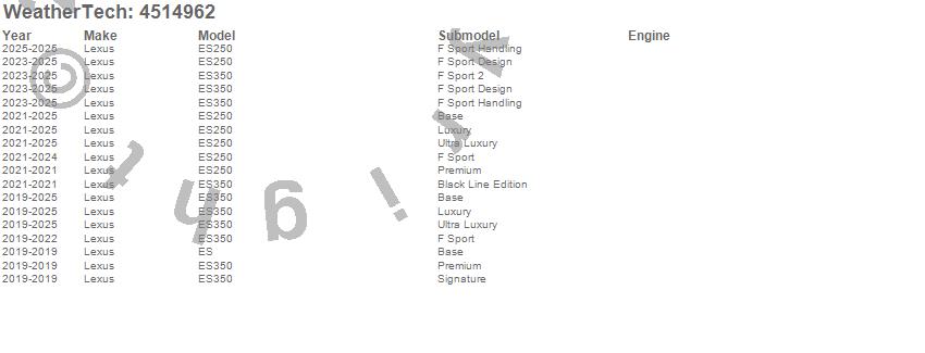Below is an abbreviated list of applications for the FloorLiner DigitalFit.ES, ES250, ES350, Lexus, 2025, 2024, 2023, 2022, 2021, 2020, 2019