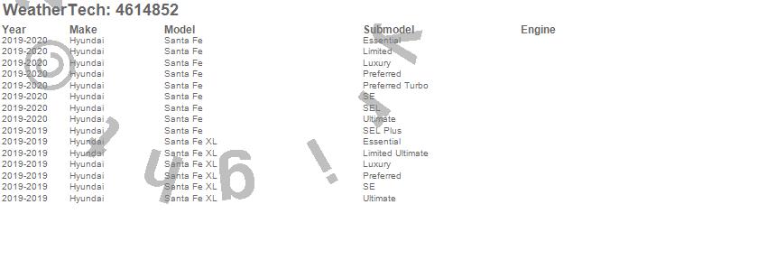 Below is an abbreviated list of applications for the FloorLiner DigitalFit.Santa Fe, Santa Fe XL, Hyundai, 2020, 2019