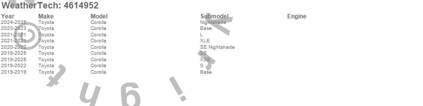 Below is an abbreviated list of applications for the FloorLiner DigitalFit.Corolla, Toyota, 2025, 2024, 2023, 2022, 2021, 2020, 2019