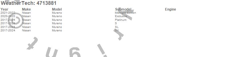 Below is an abbreviated list of applications for the FloorLiner DigitalFit.Murano, Nissan, 2024, 2023, 2022, 2021, 2020, 2019, 2018, 2017