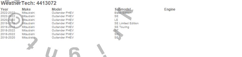Below is an abbreviated list of applications for the FloorLiner DigitalFit.Outlander PHEV, Mitsubishi, 2022, 2021, 2020, 2019, 2018