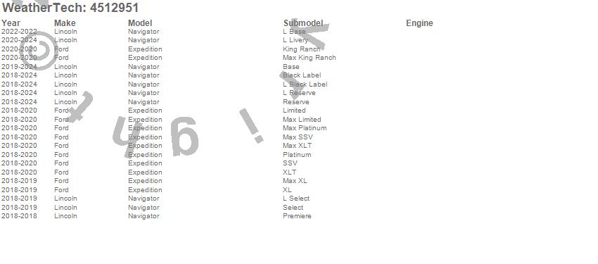 Below is an abbreviated list of applications for the FloorLiner DigitalFit.Expedition, Navigator, Ford, Lincoln, 2024, 2023, 2022, 2021, 2020, 2019, 2018