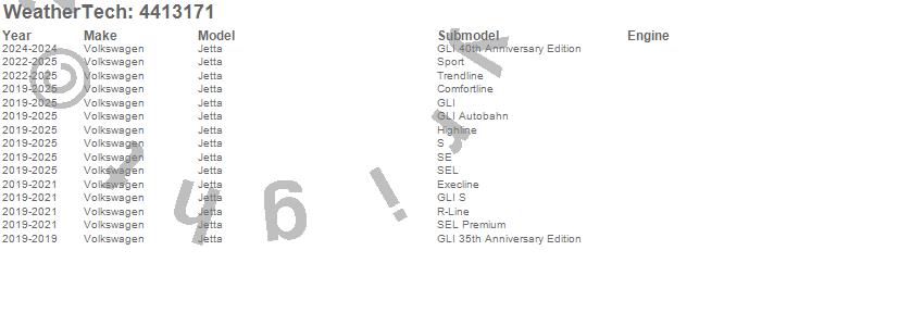 Below is an abbreviated list of applications for the FloorLiner DigitalFit.Jetta, Volkswagen, 2025, 2024, 2023, 2022, 2021, 2020, 2019