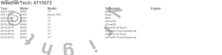 Below is an abbreviated list of applications for the FloorLiner DigitalFit.Alpina XB7, X7, BMW, 2025, 2024, 2023, 2022, 2021, 2020, 2019
