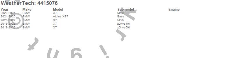 Below is an abbreviated list of applications for the FloorLiner DigitalFit.Alpina XB7, X7, BMW, 2025, 2024, 2023, 2022, 2021, 2020, 2019