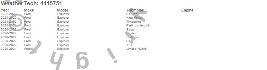 Below is an abbreviated list of applications for the FloorLiner DigitalFit.Explorer, Ford, 2022, 2021, 2020
