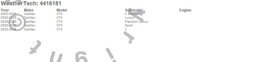 Below is an abbreviated list of applications for the FloorLiner DigitalFit.CT4, Cadillac, 2025, 2024, 2023, 2022, 2021, 2020