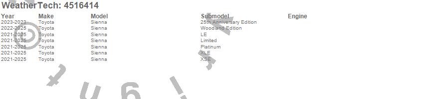 Below is an abbreviated list of applications for the FloorLiner DigitalFit.Sienna, Toyota, 2026, 2025, 2024, 2023, 2022, 2021